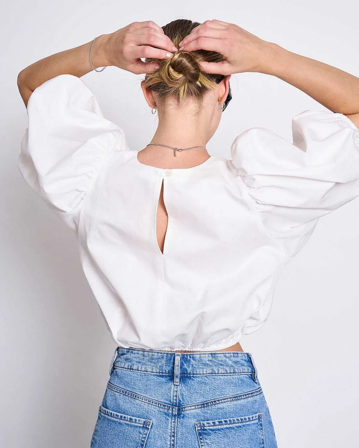 Laide Besteht Zu 100 % Aus Bio-Baumwolle, Was Der Bluse Einen Festen Griff Verleiht, Aber Trotzdem Leicht Und Luftig Bleibt.