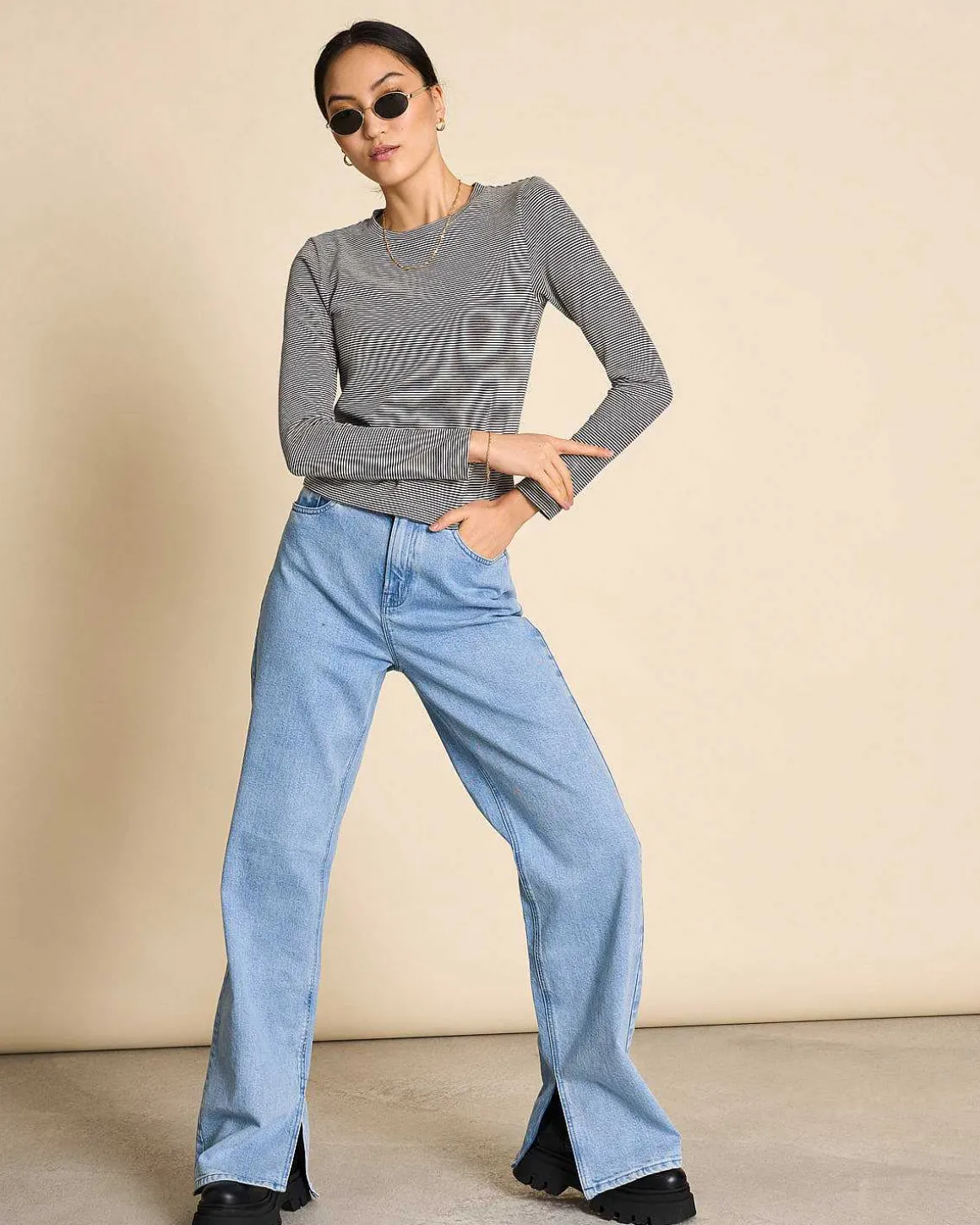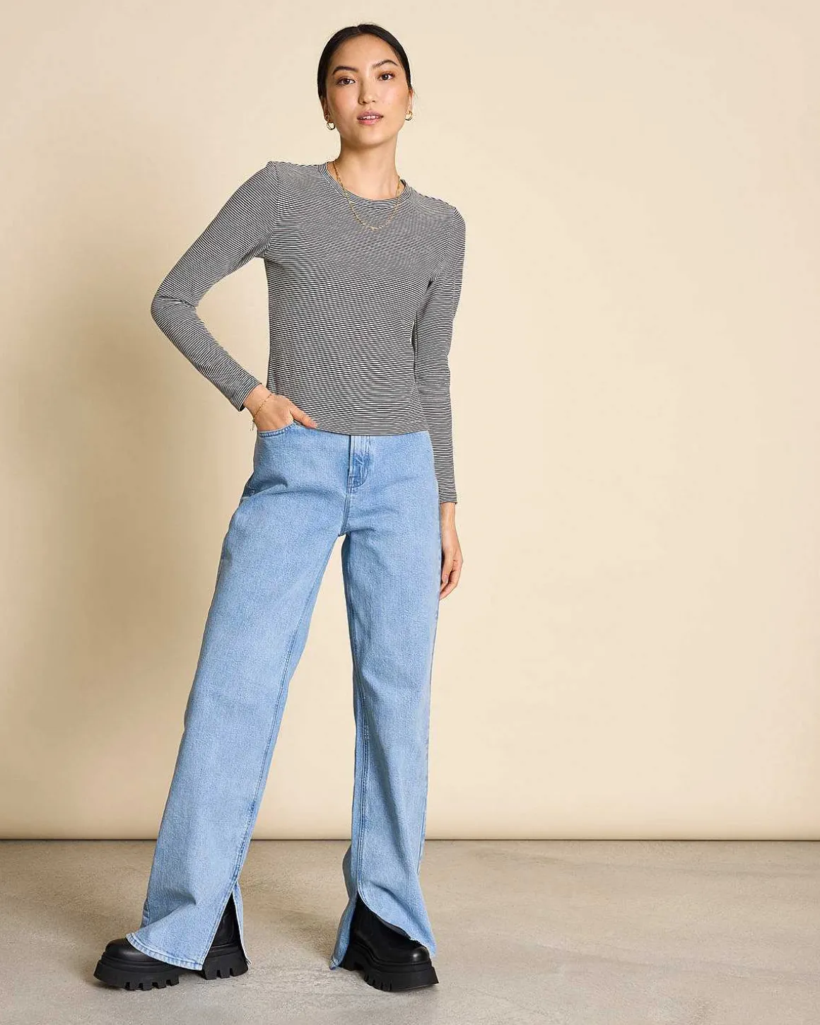 Longsleeve Perla Black White Striped