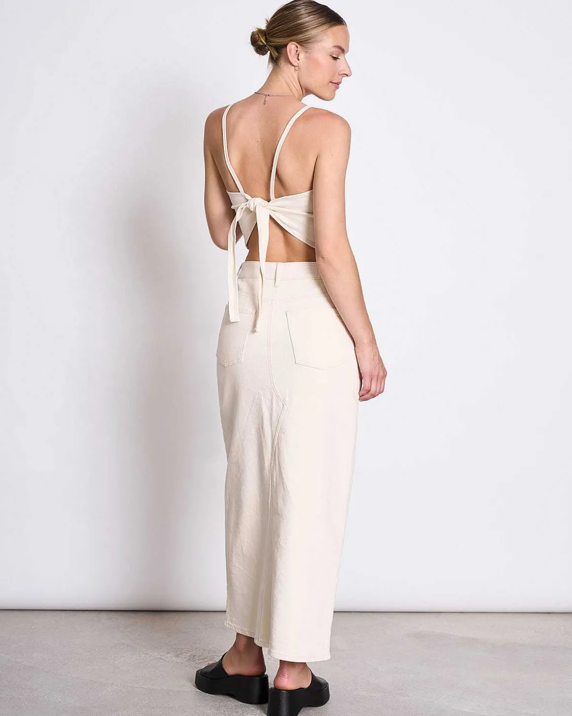 Sera Hat Einen Geraden Halsausschnitt Und Eine Verstellbare Schleife Auf Dem Rücken. Am Vorderen Saum Ist Es Leicht Enger Geschnitten.