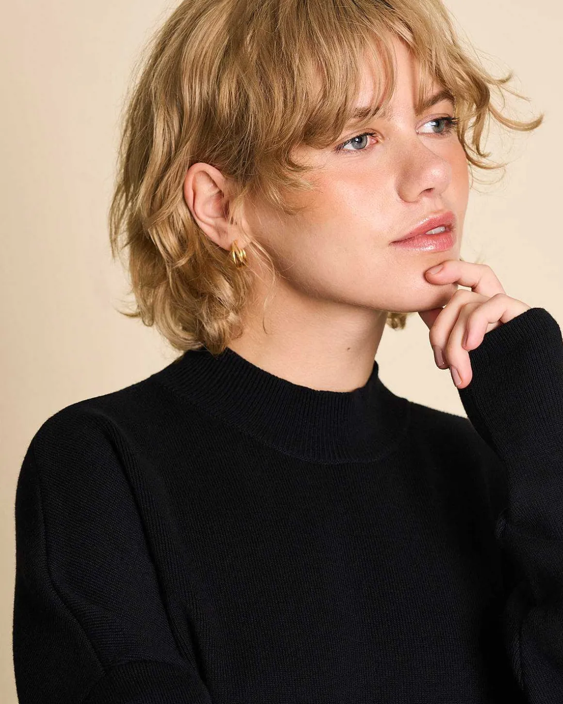 Nuna Is A Short-Length Dress Which Comes With A High Collar And Slight Bat Sleeves. The Dress Is Oversized On The Upper Body And Tighter At The Bottom.