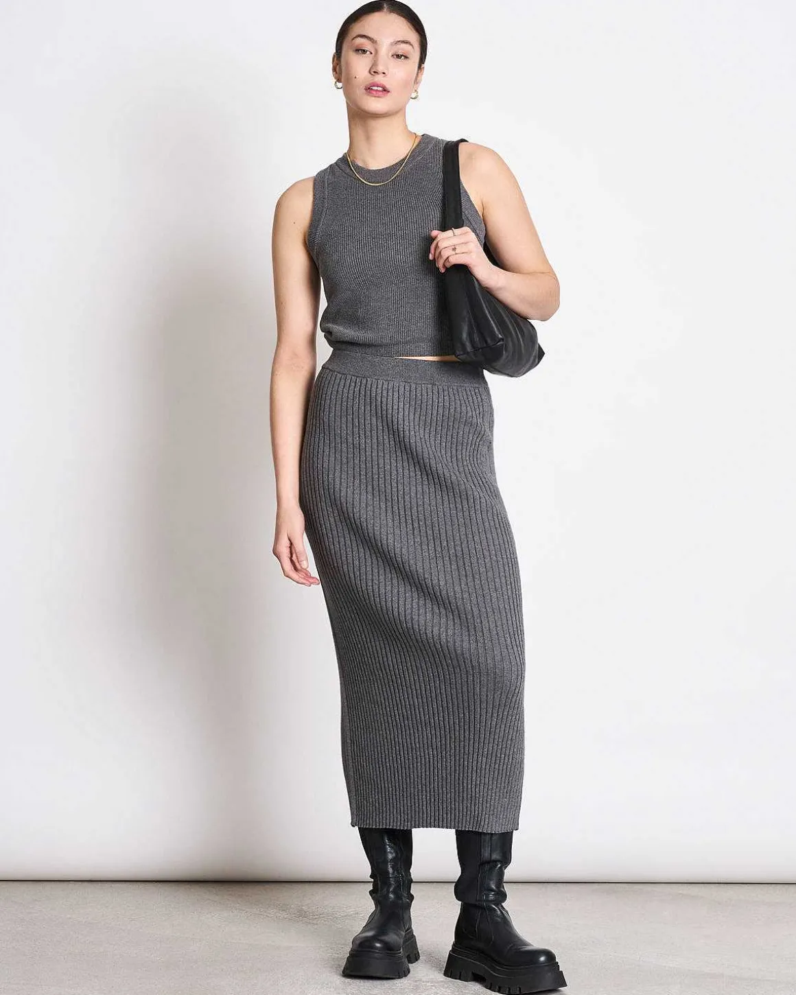 Trage Ebba Mit Einem Einfachen Cropped Pullover Oder Peppe Ein Weißes T-Shirt Mit Dem Rock Auf. Der Rock Ist Nicht Nur Dein Begleiter Im Frühling Und Sommer. Er Ist Auch Der Perfekte Rock Für Layering Im Herbst Und Winter.