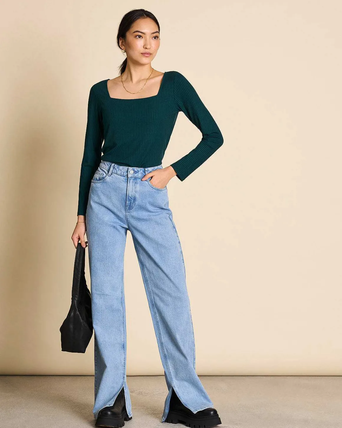 Fria Hat Einen Quadratischen Ausschnitt, Eine Schmale Passform Und Lange Ärmel. Dieses Must-Have Longsleeve Passt Perfekt Zu Einer Jeans Oder Einem Fließenden Rock!